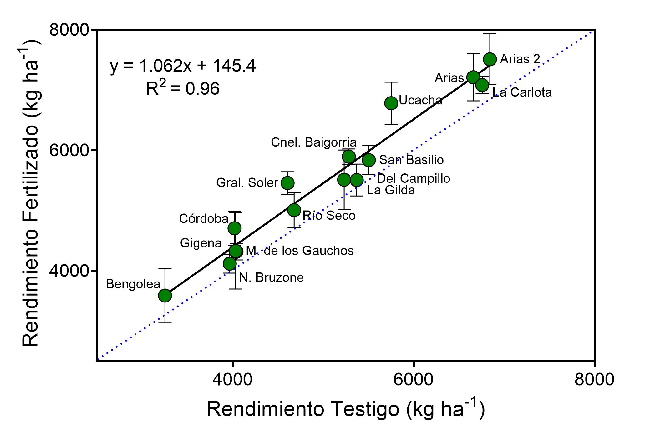 Si bien no se realizaron mediciones directas de propiedades físicas del suelo, los aumentos consistentes de rendimiento observados en los cultivos a lo largo de los años indican una mayor producción de biomasa aérea y de raíces, con su consecuente aporte de rastrojos. Este proceso, al contribuir con carbono orgánico derivado de un manejo de fertilización sostenido, probablemente favorezca gradualmente la estructura y la estabilidad del suelo, mejorando la porosidad, la aireación y la calidad física, química y biológica del sistema, y reforzando así su sostenibilidad. Aunque aún no se cuantificaron efectos biológicos específicos, también es probable que la mayor disponibilidad de carbono y nutrientes estimule la actividad microbiana y la eficiencia de mineralización, reforzando el ciclo de nutrientes como el del nitrógeno y del fósforo en el sistema.